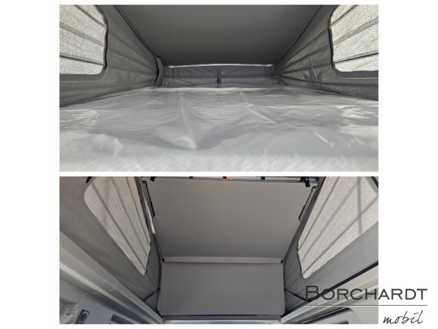 - Aufstelldach Wagenfarbe, selbstbergender Faltenbalg anthrazit mit 3 Fenstern m. Moskitonetzen